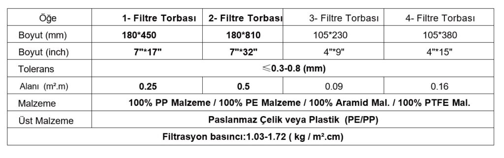 Torba Filtreler , paslanmaz çelik ve PVC Torba filtre kasaları içerisinde; sudaki ve boyadaki kirliliklerin ihtiyaç duyulan mikronlarda (1-5-10-25-50-100-200) arıtılmasını sağlayan Polipropilen, Monoflament veya Polyester malzemeden üretilmiş filtrelerdir. Ürünlerimiz müşterilerimizin ihtiyaçlarına cevap verebilmek adına istenilen boyutlarda üretilmektedir Kataforez kaplama sonrası, boya akıntısını önlemek ve parça üzerindeki tutunamayan boyaları geri kazanmak için su ile yıkama yapılması gerekmektedir. Bu yıkama işlemi, sisteme dışarıdan eklenen su ile yapılırsa tanktaki su seviyesi artar.Boyanın %80’i sudan oluşmaktadır. UF Modül sistemlerinde, proses esnasında kullanılan kataforez boyasının bir kısmı filtrelenip, içerisindeki su ayrıştırılır. Filtrelenen bu su, durululama sıvısı olarak kullanılmaktadır. Bu kapalı döngü sistemi sayesinde, yıkama esnasında sisteme dışarıdan sıvı eklenmesi gerekmez. (1 m^2 yi yıkamak için 2,5 litre temiz UF sıvısı (permea) gerekmektedir.)